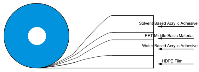 | Kode | Bahan Film | Warna Film | Lebar Film | Sisi lem | Lebar perekat berbasis air | Lebar perekat akrilik | Panjangnya /gulungan | paket Roll / ctn |